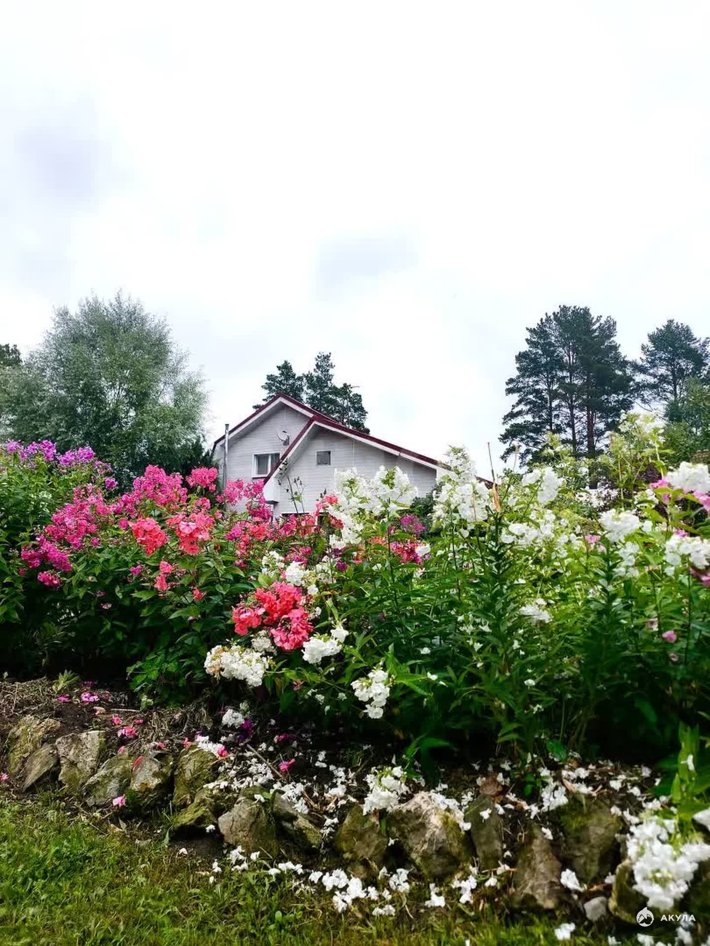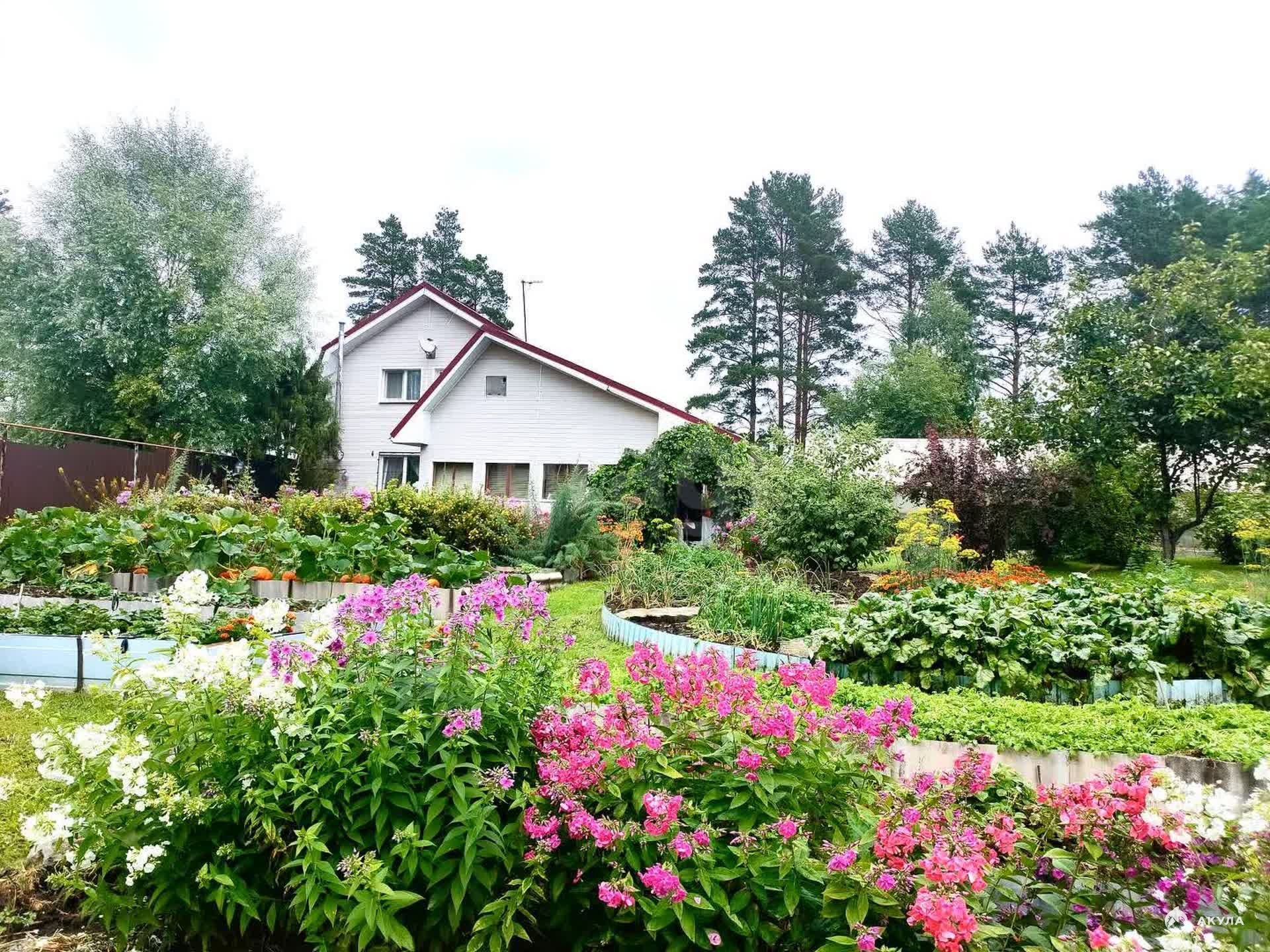 Участок благоустроен и насыщен разнообразной растительностью: богатый выбор цветов, фруктовых деревьев и декоративных насаждений создают атмосферу уюта и гармонии с природой. Есть теплица, благодаря которой вы сможете выращивать свежие овощи и зелень. На участке разместились два хозяйственных блока, гараж, навес для автомобиля, погреб для хранения свежих заготовок и баня — отличный вариант для отдыха и релаксации.