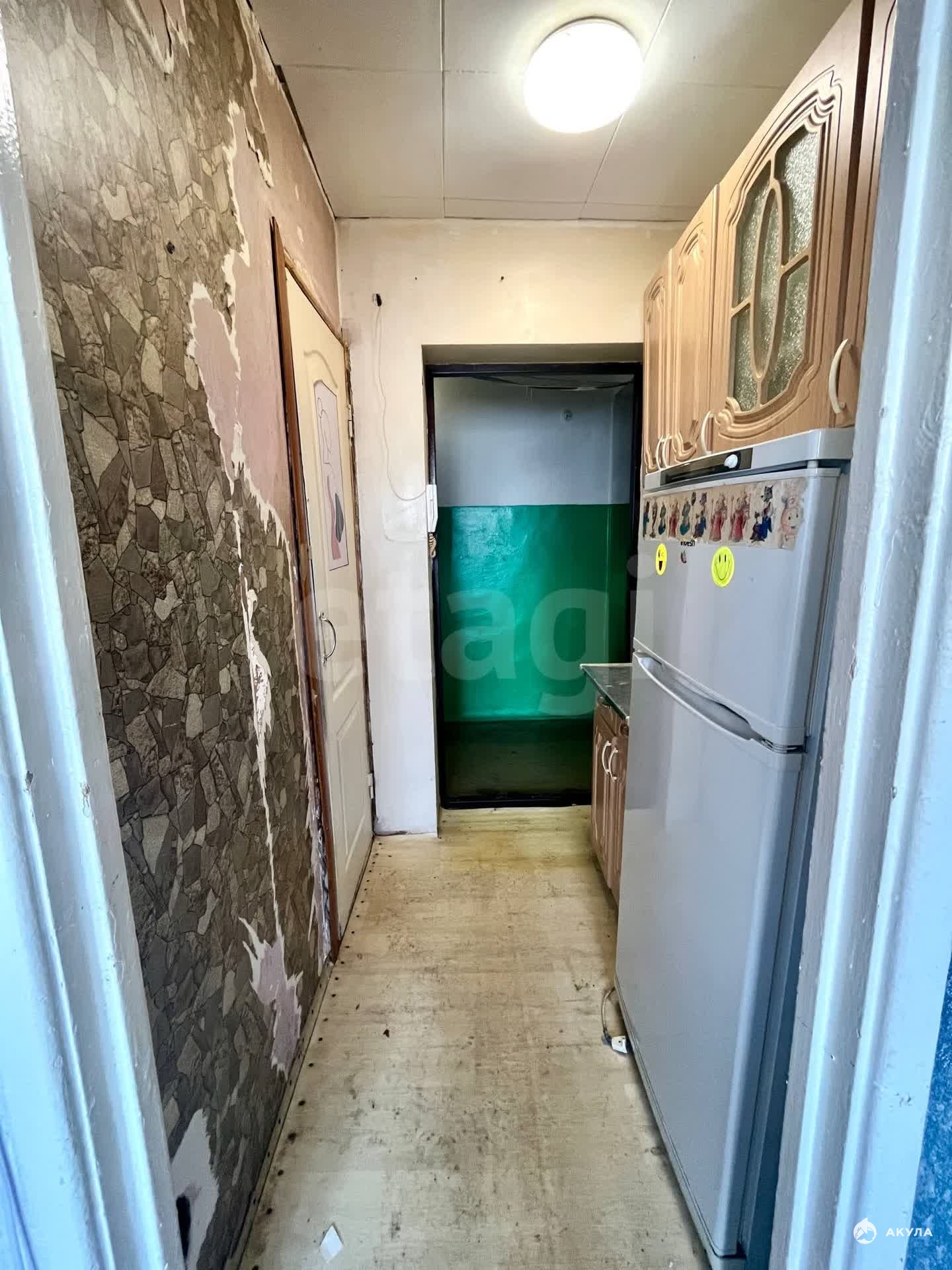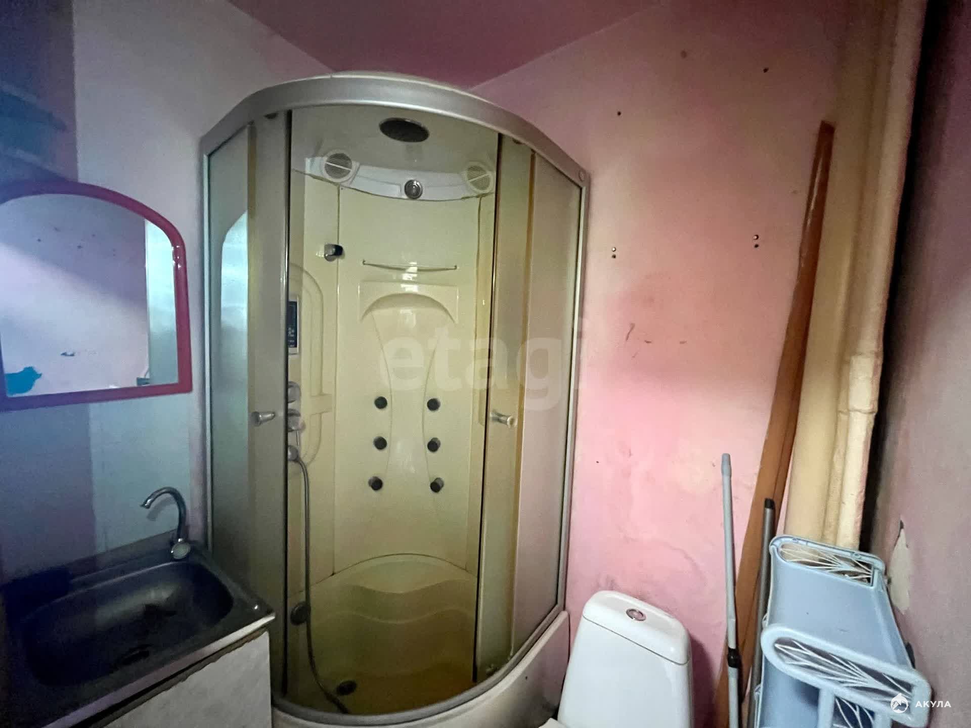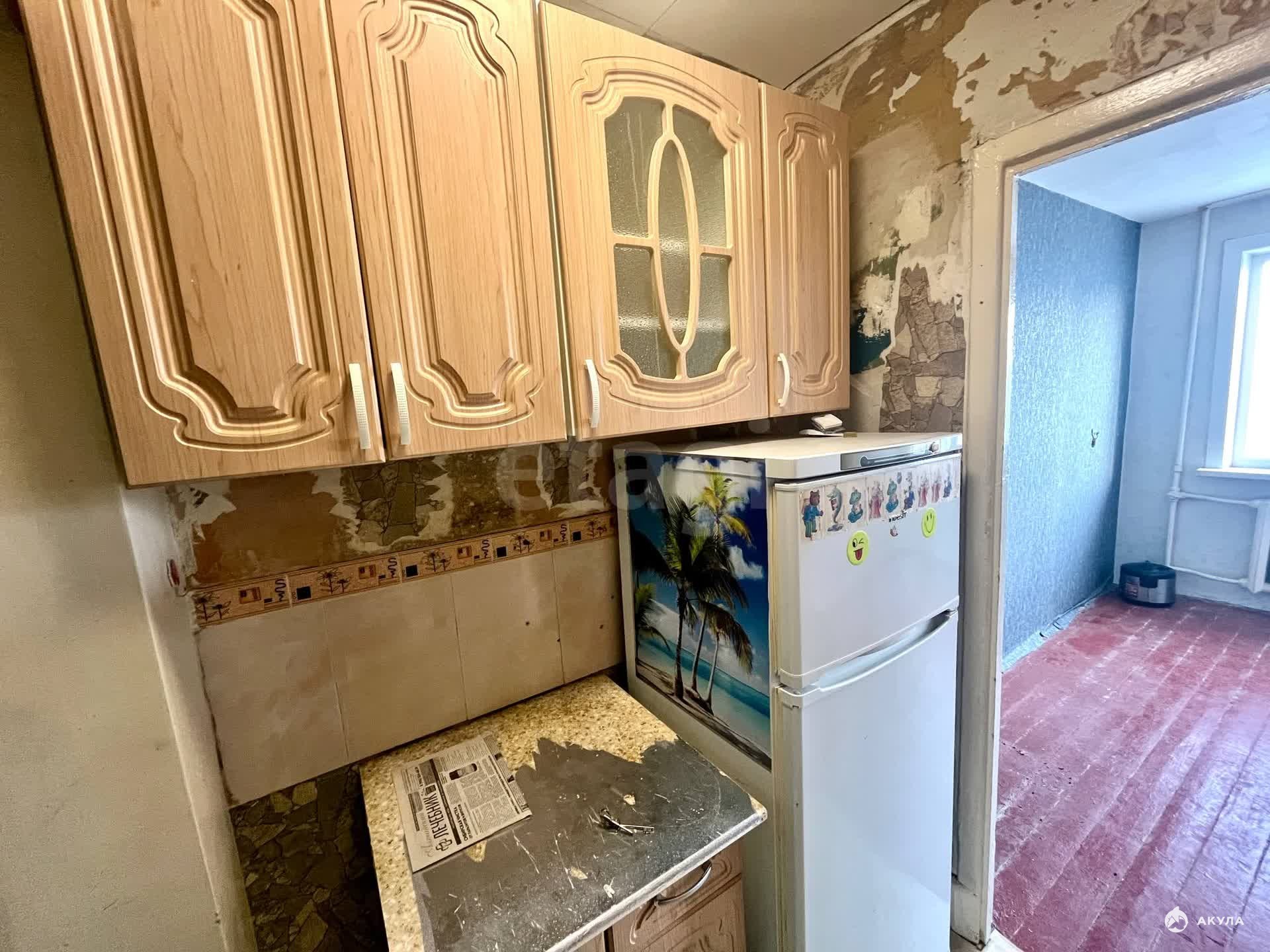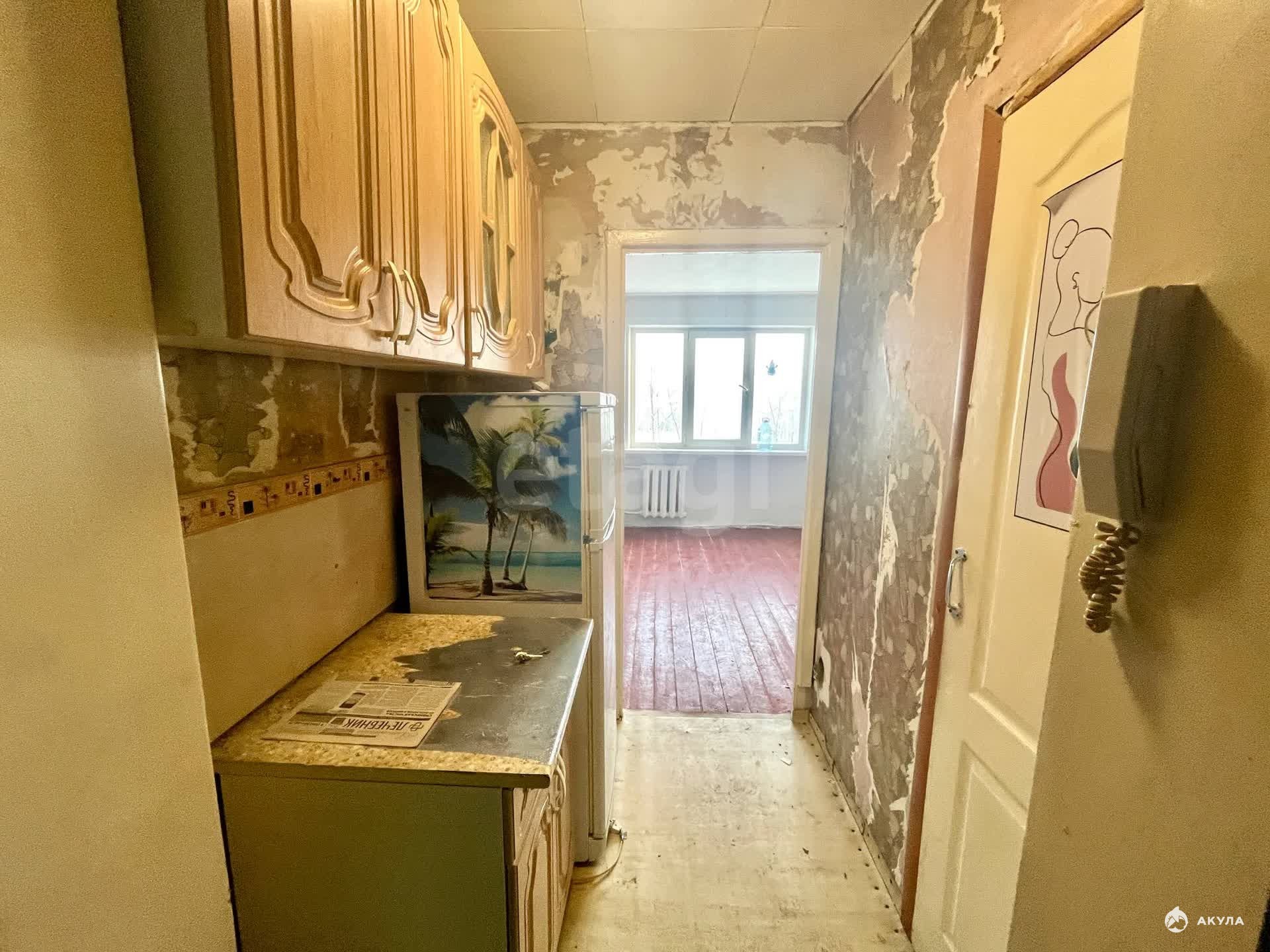 Несмотря на необходимость ремонта, в квартире уже есть база для жизни: современная душевая кабина в совмещенном санузле, вместительный кухонный шкаф и рабочий холодильник (остается вам).