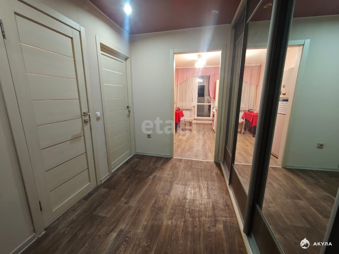 На этаже широкий общий коридор за отдельной дверью.