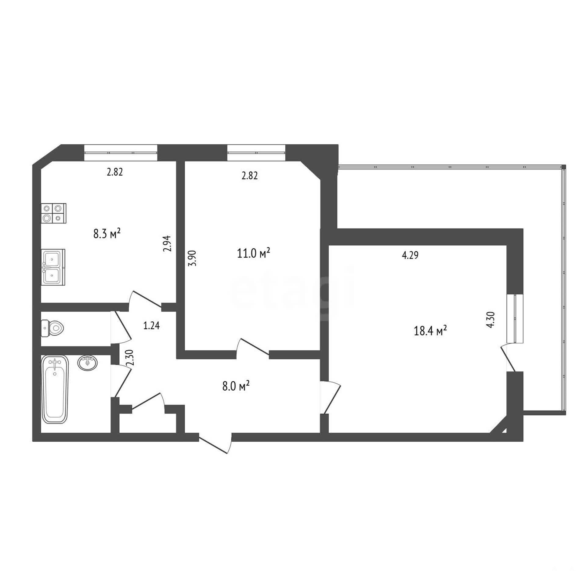 Ключевым преимуществом объекта является просторная кухня 8, 3 кв. м, функциональное пространство которой оптимально для повседневного использования и приема гостей.