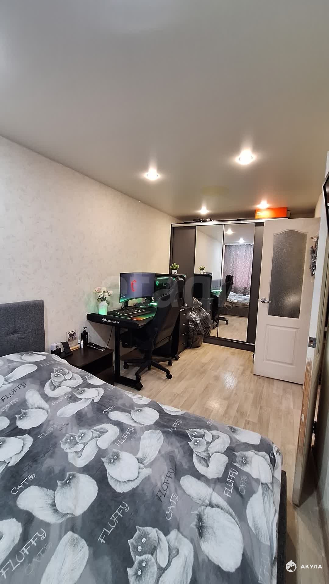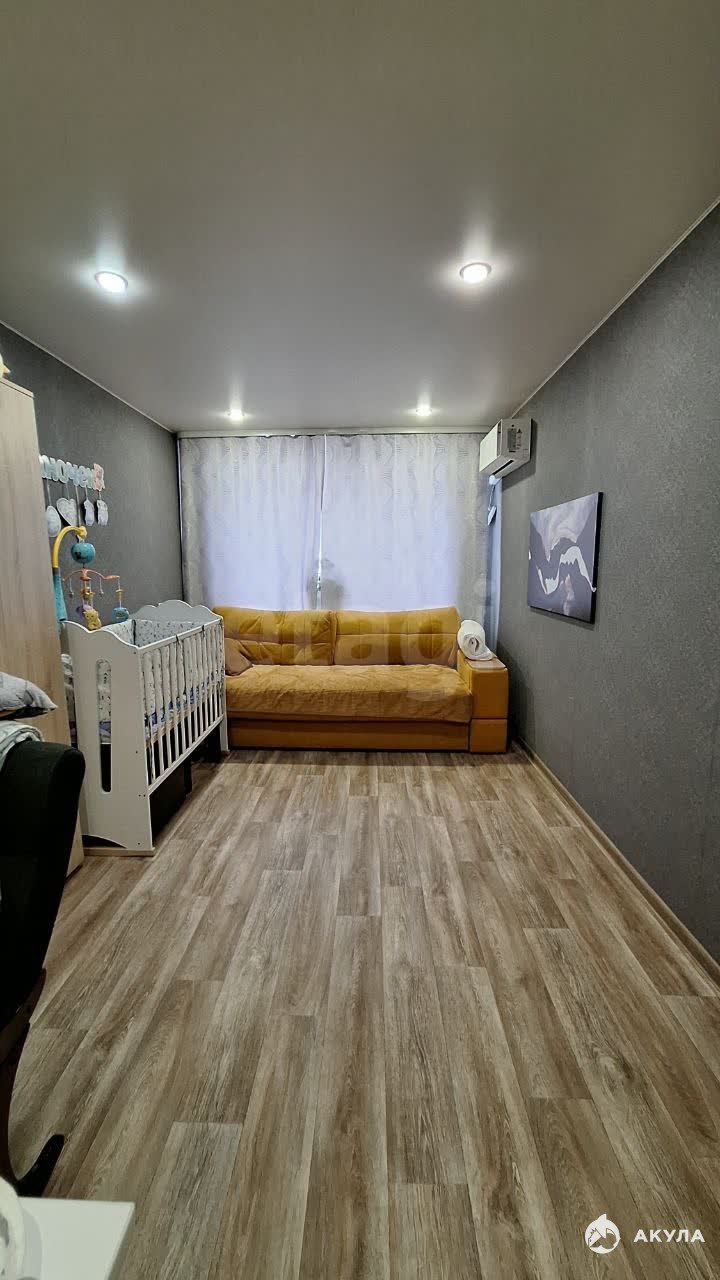 Новому собственнику остается шкаф в комнате, кухонный гарнитур, холодильник.