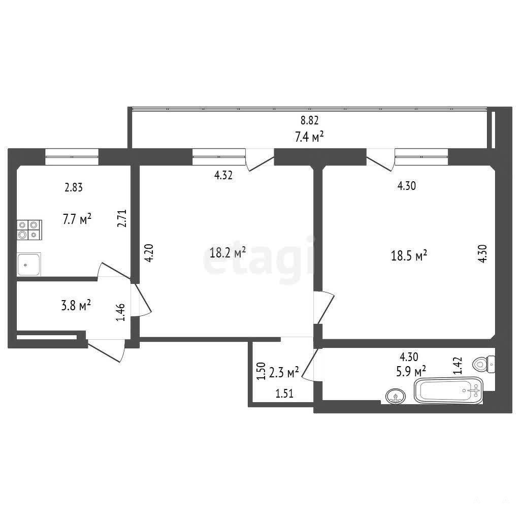 Продается двухкомнатная квартира в 4-х этажном доме.