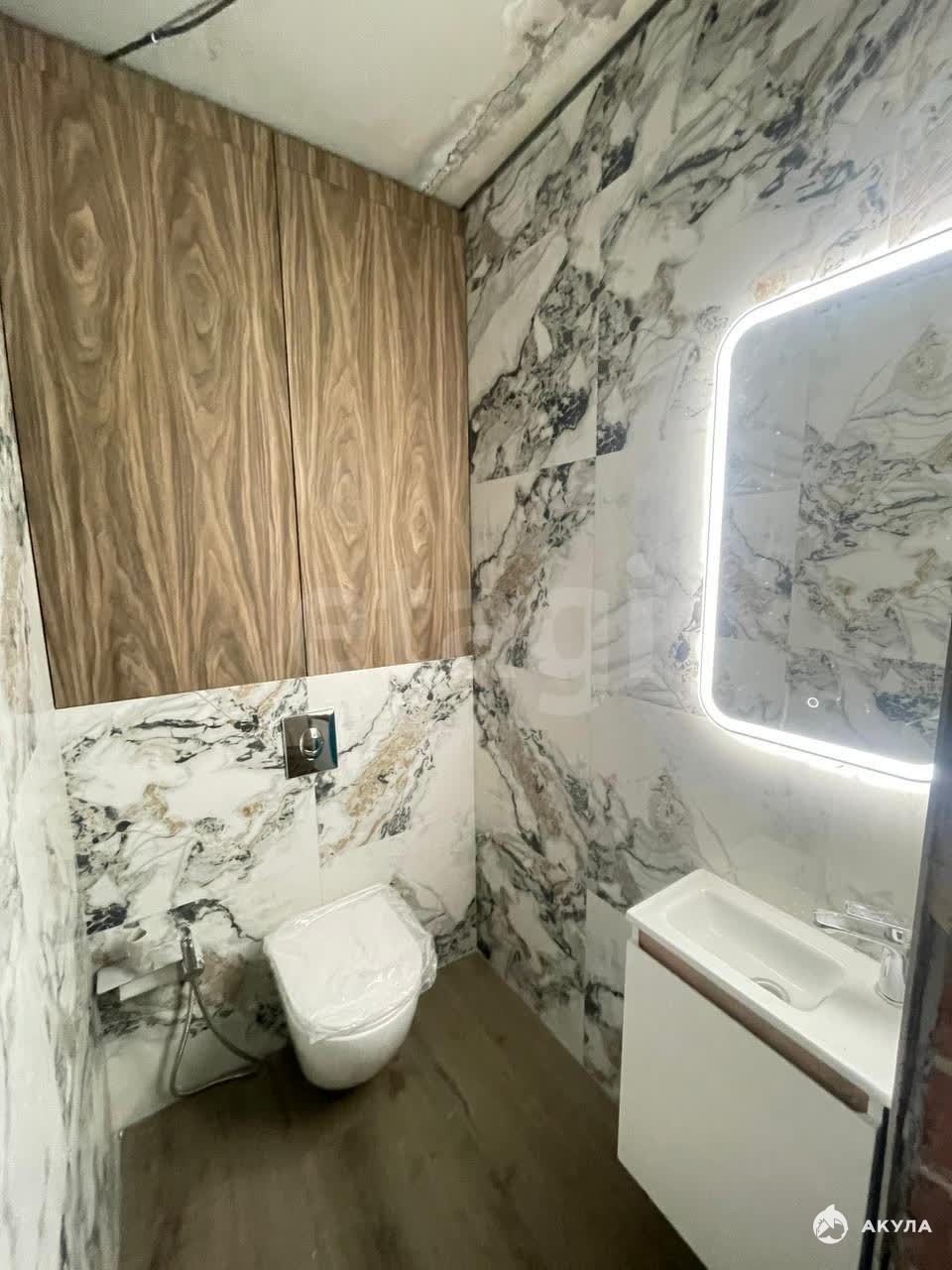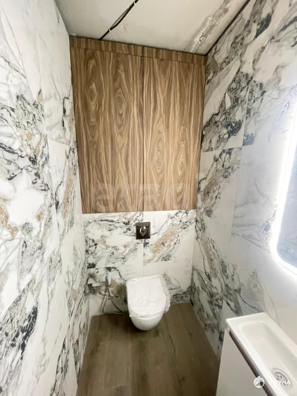 В квартире установлены 2 санузла, что очень удобно для большой семьи с детьми. Оба санузла обложены керамогранитной плиткой. В санузле установлена инсталляция, электрический полотенцесушитель и большой водонагреватель, предусмотрен тропический душ, зеркало с подсветкой и раковина с тумбой. На кухне размещен большой встроенный гарнитур Hair с интегрированной микроволновой печью, посудомоечной машиной и вытяжкой. Также фильтры для воды.