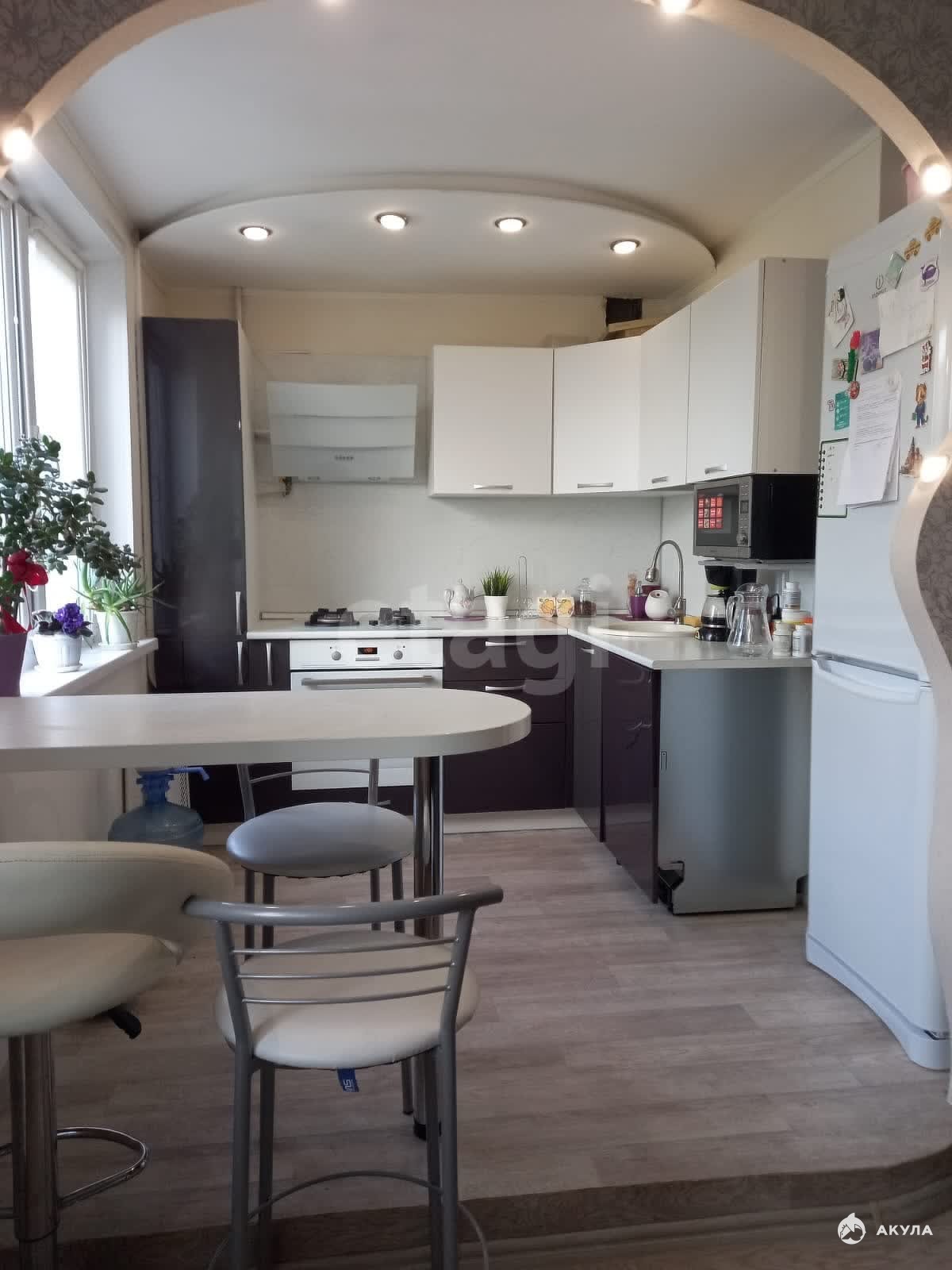 В качестве бонуса новым владельцам останется кухня со встроенной техникой (варочная поверхность, духовой шкаф, вытяжка, посудомоечная машина).